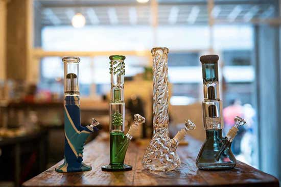 After making a purchase, you'll receive a complimentary rolling tray, grinder and your choice of a bong or papers to use in the lounge! Customers are also welcome to rent high-end pieces for a small fee.